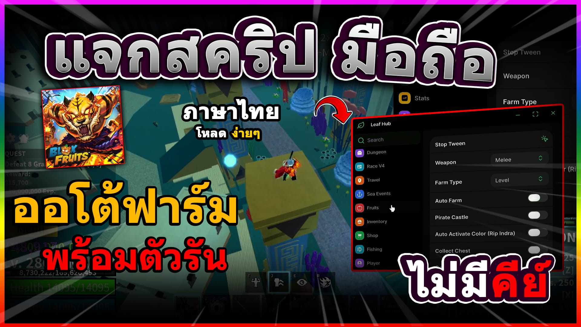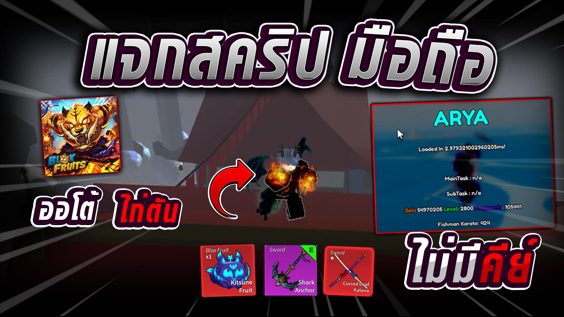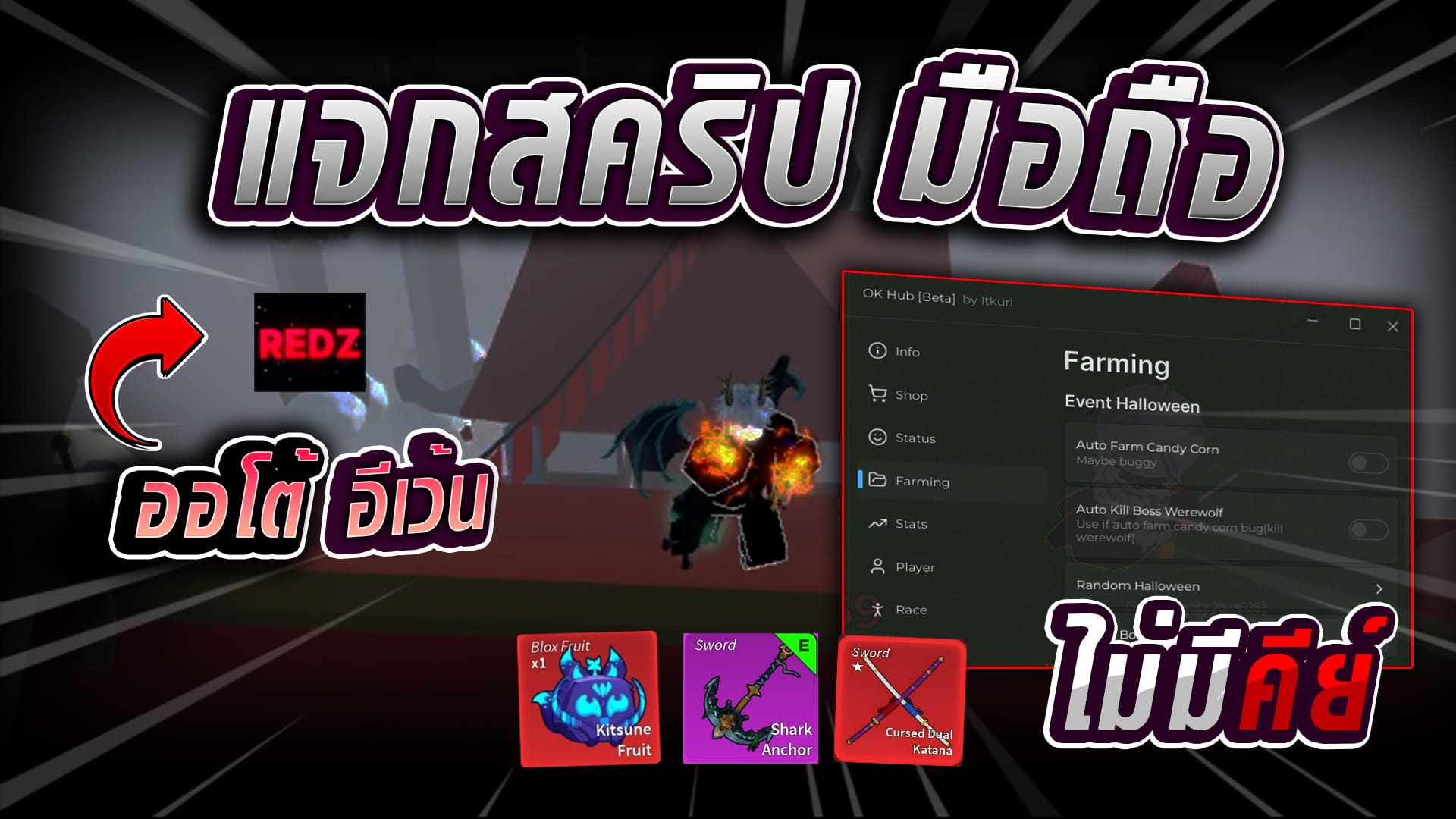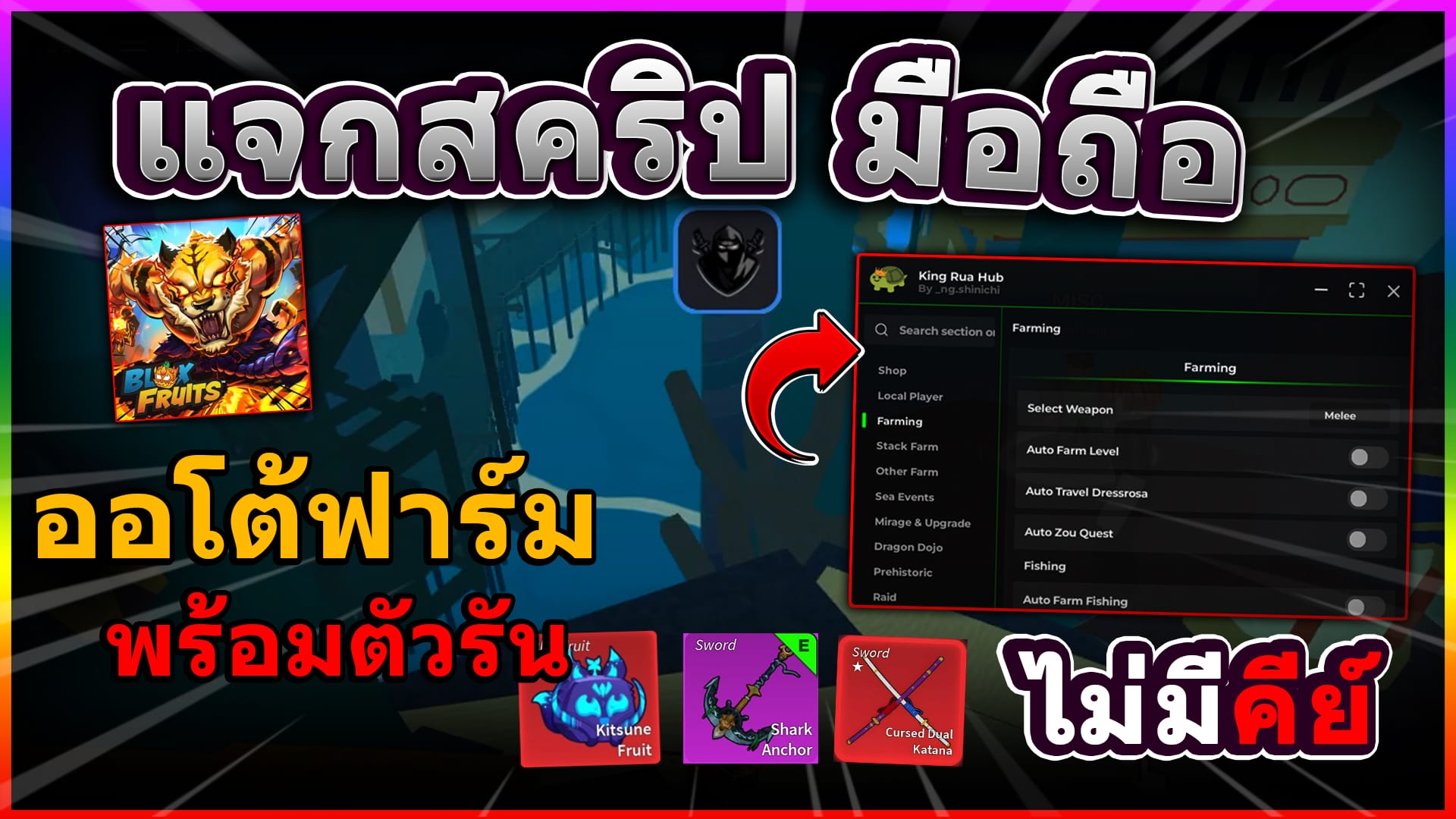กดก็อปปี้สคริปได้เลย! (กดปุ่มแดง2-3ครั้ง) Copy to Clipboard loadstring(game:HttpGet("https://raw.githubusercontent.com/fakekuri/Okhubhere/refs/heads/main/MainBloxFruit.lua"))() ฟีเจอร์ของ สคริป Auto-Farm: เก็บเลเวลและเงินแบบง่าย ๆ Auto-Raid: ทำเรดเพื่อสะสมผลปีศาจได้อย่างรวดเร็ว Fruit Sniper:…