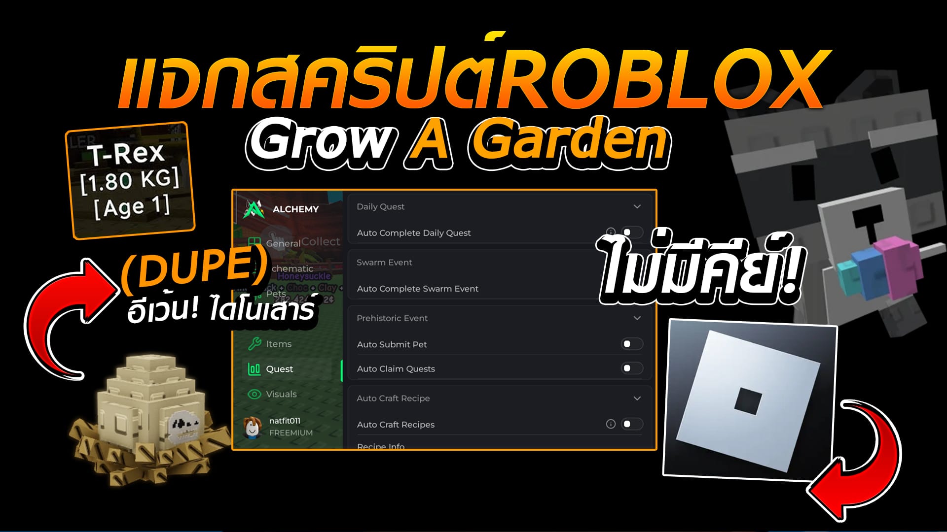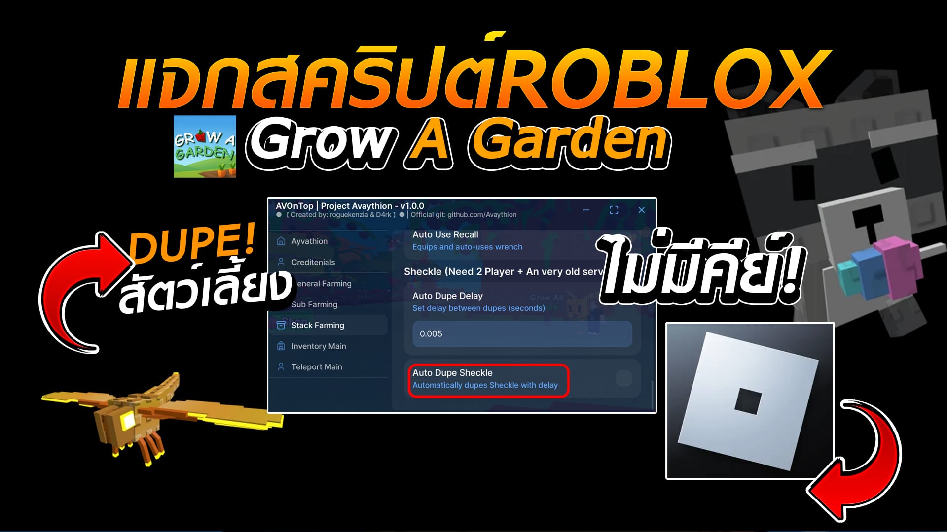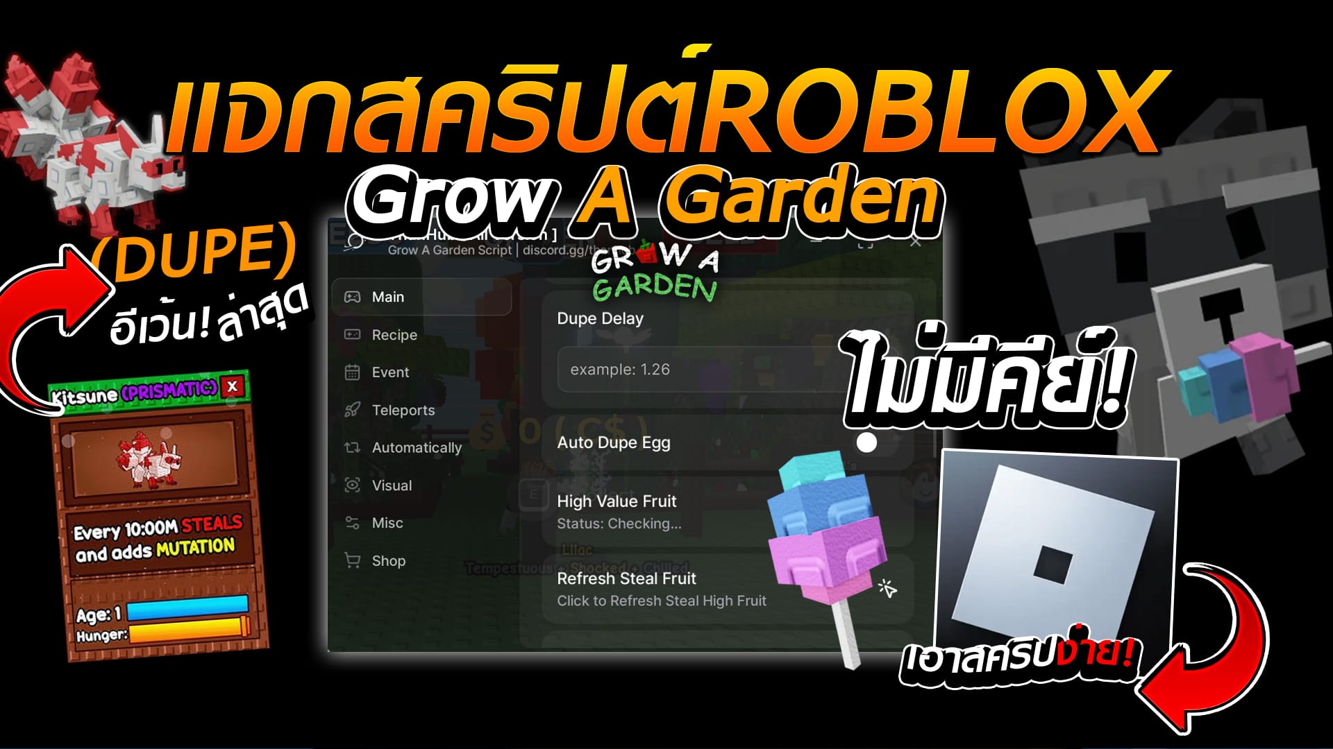 กดก็อปปี้สคริปได้เลย! (กดปุ่มแดง2-3ครั้ง) Copy to Clipboard loadstring(game:HttpGet('https://raw.githubusercontent.com/ThundarZ/Welcome/refs/heads/main/Main/GaG/Main.lua'))() ฟีเจอร์ของ สคริป Auto-Farm: เก็บเลเวลและเงินแบบง่าย ๆ Auto-Raid: ทำเรดเพื่อสะสมผลปีศาจได้อย่างรวดเร็ว Fruit Sniper:…